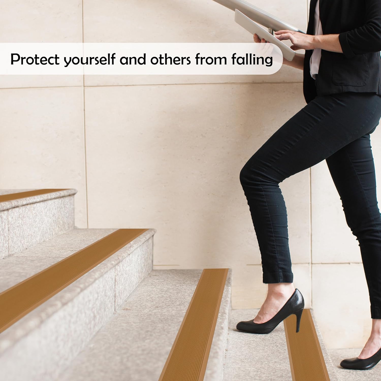 Rubber Bond 4x36in Anti Slip Stair Treads (5-Pack) - Waterproof Outdoor/Indoor Heavy Duty Non-Skid Tape for Stairs - Adhesive Rubber Grip Strips for Steps & Ramps - Brown