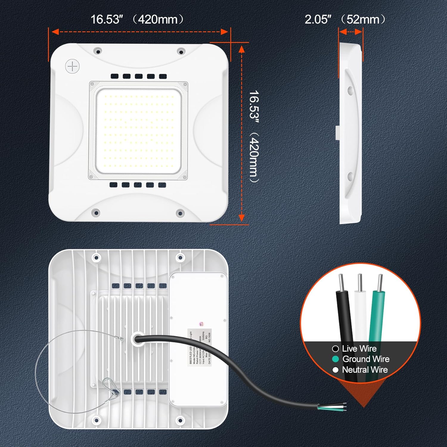 - 【Easy Installation】The canopy light for gas station have 2 Types of installation method, upports pendant mounting or direct surface mounting. Note: Pole-pendant Mounted(Pole not included), Turn off the power before installation
