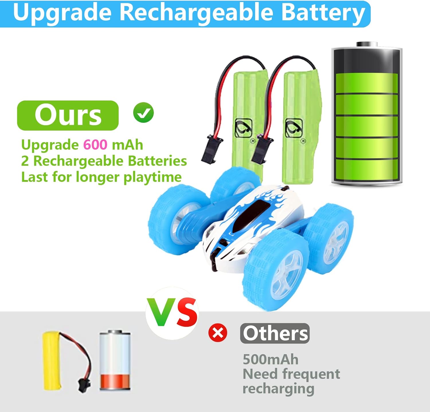 - 360° Rotating Stunts: The RC car can perform a variety of stunts, including running, moving forward and backward, turning right and left, rolling, and rotating 360 degrees. It can also drive on both sides, allowing for different playing experiences and the ability to pass obstacles easily.