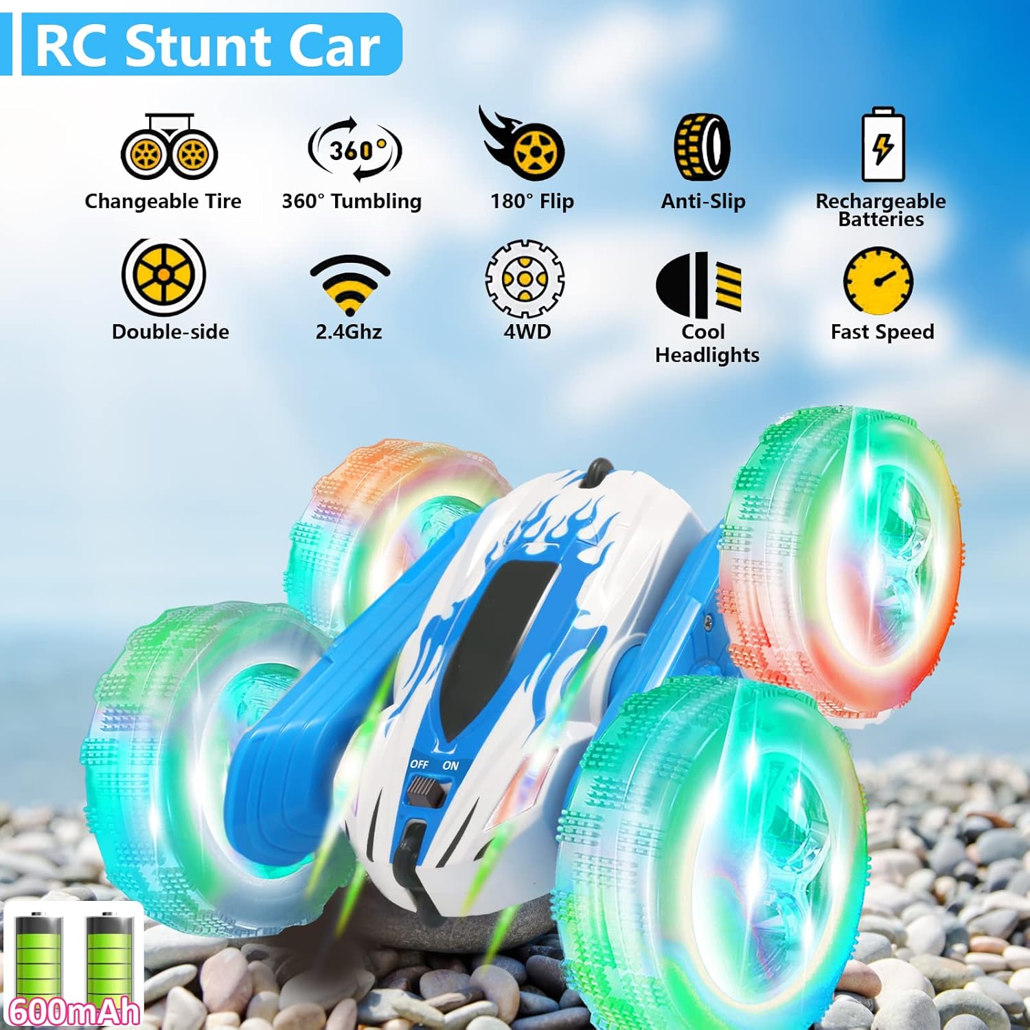 FREE TO FLY Remote Control Car For Boys: Kids RC Stunt Cars Toy with Headlights & WheelLights Double-Sided Driving 360°Flip Rotating Car Toys Gifts Presents for Boy Girls Age 6 7 8 9 10 11 12 Year Old