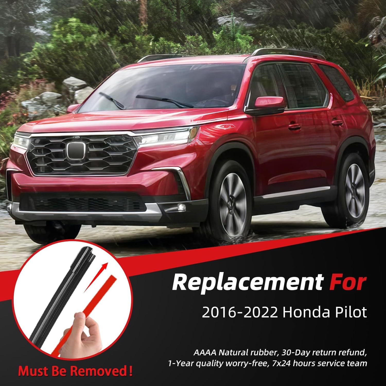 - [26"+24"+14" Perfect Fitment]: Replacement for Honda Pilot 2016-2022. Our windshield wiper blades are engineered to provide a perfect fit for vehicle models, ensuring optimal performance and coverage
