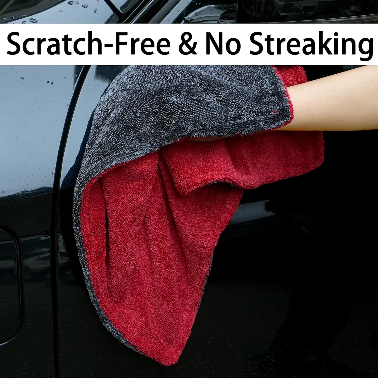 LIVOS 2 Pack Car Drying Towel, Premium Microfiber Towels for Cars, 1000GSM, Edgeless Twisted Loop Design, No Streaks, Scratches, or Water Spot, Absorbent Wash Towel, 18" x 24" (Red&Grey)