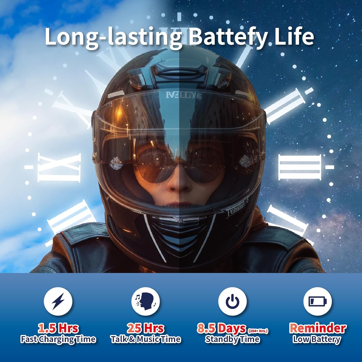 Salut Motorcycle Bluetooth Intercom Headset - Helmet Communication System, Waterproof Speaker, Voice Comm Earbuds, Helmet Headphone, Noise Cancellation(Duo Black)