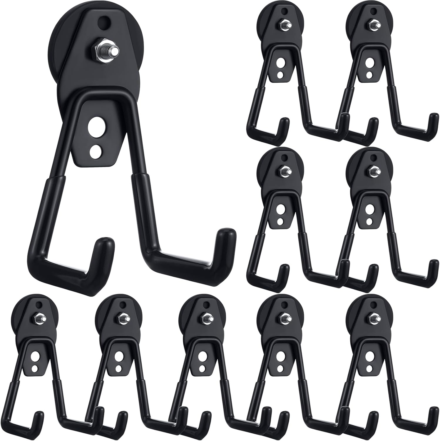 Landhoow Large Magnetic Hooks Heavy Duty Garage Magnet Hooks Strong Storage Utility Magnetic Hangers with Anti Slip Rubber Coating for Indoor and Outdoor Hanging(Black,10 Pcs)