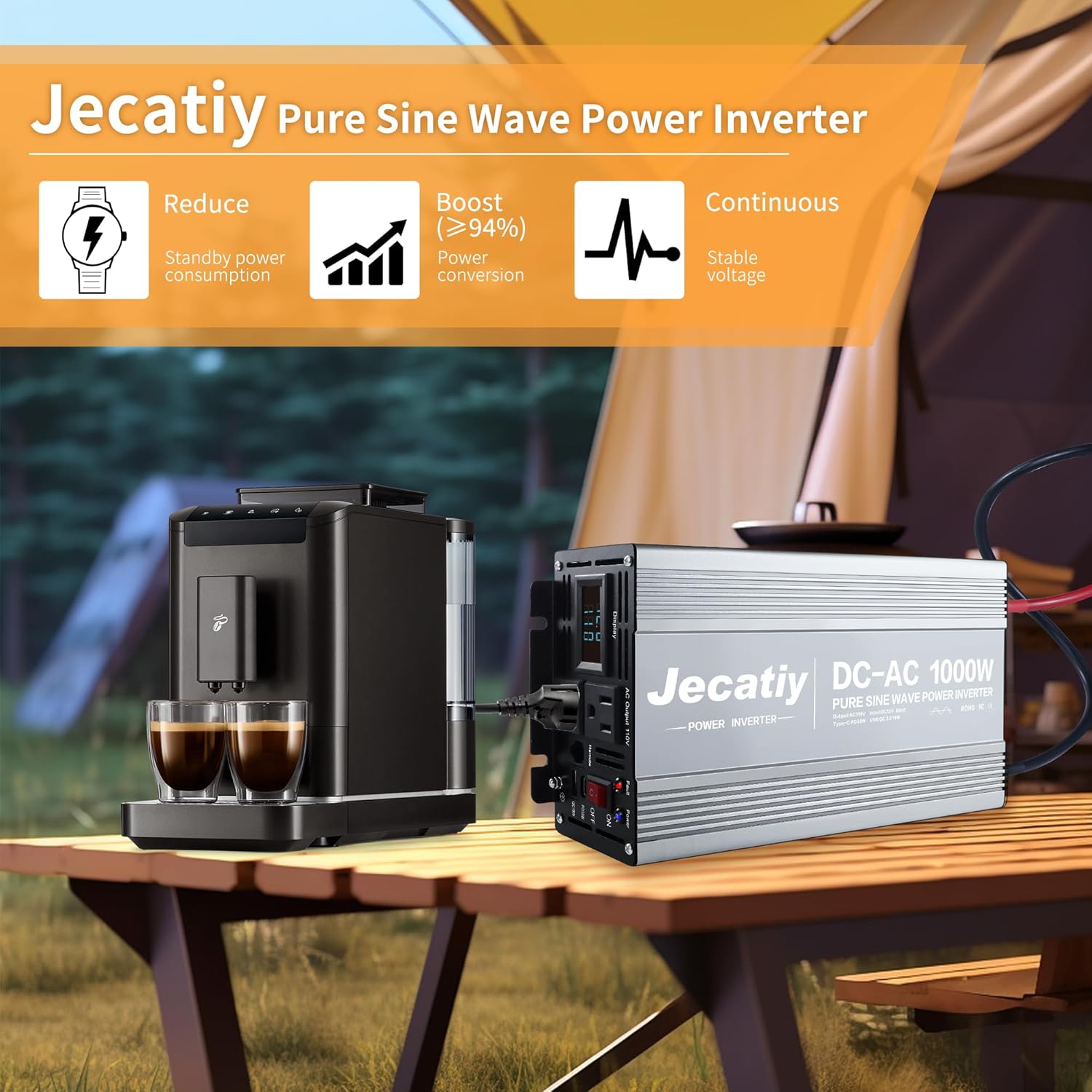 - 【1000W Pure Sine Wave Inverter】Jecatiy upgrade fully 1000W Power Inverter provides a continuous PURE SINE WAVE power of 1000W, with a peak surge of 2000W during load start-up. Tip: It can handle most appliances for you (including refrigerators, microwaves, or some power tools), as well as low-power devices. Note: The voltage of 110V is the actual display, and 100-120V is the supported range of the application