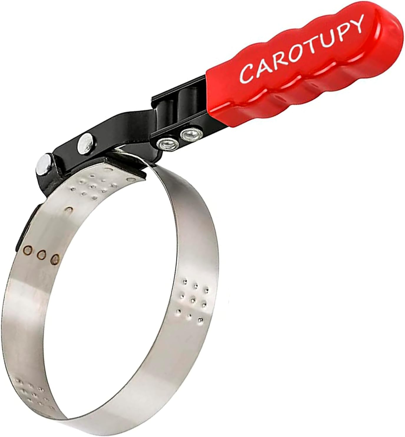 - Unique Design: The oil filter wrench tool is designed with sturdy double layer riveted structure that can be adjust in two directions and swivel 180 degrees for easy use in narrow spaces. The protruding texture on the band provides a secure grip on the oil filter, preventing slippage during use.
