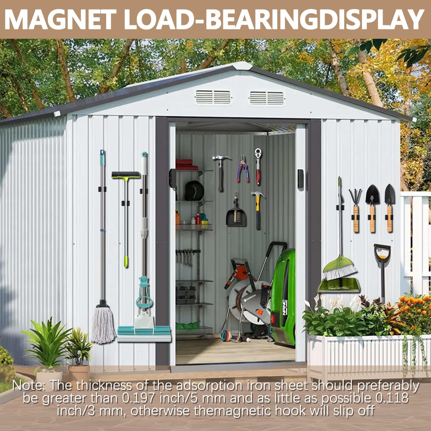 - π§²[INDOORS OR OUTDOORS ] Using mop and broom holder wall mount tidy up your broom, mop, rakes, tools and more! Perfect for the kitchen, closet, garage, office, great for commercial use, and thanks to the waterproof design, this magnet broom even works outdoors or on the shed for your garden tools when you are using the screws.