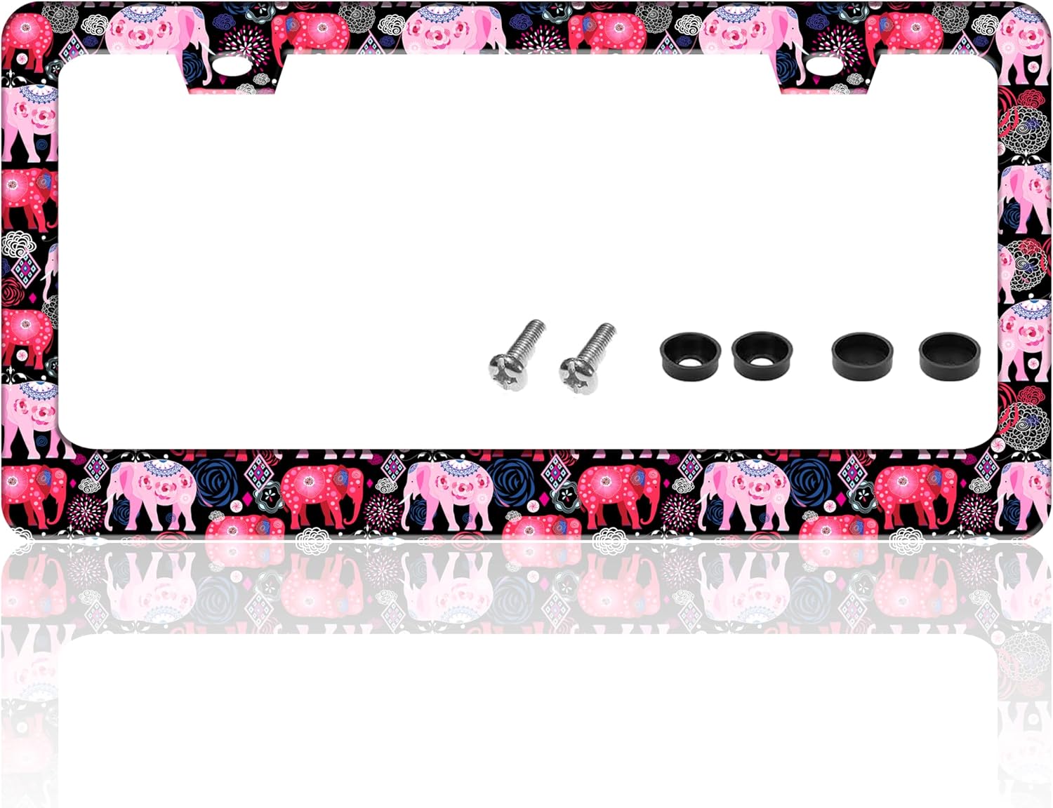 Tribal Elephant License Plate Frame Beautiful Animal License Plate Holder for Front or Rear Car Tags Reusable Stainless Steel Funny Car Decoration with Screws 6.3 X 12.2 Inch