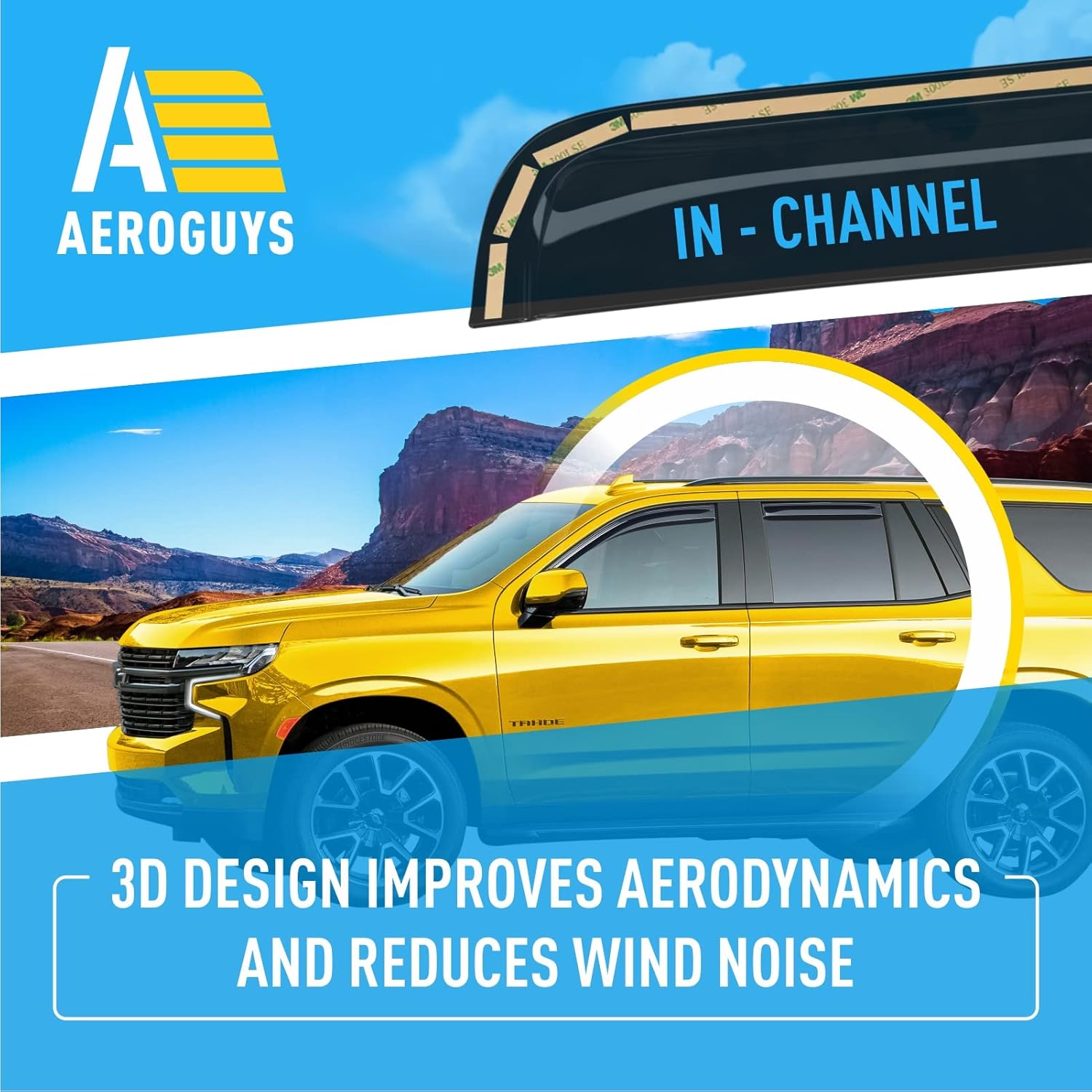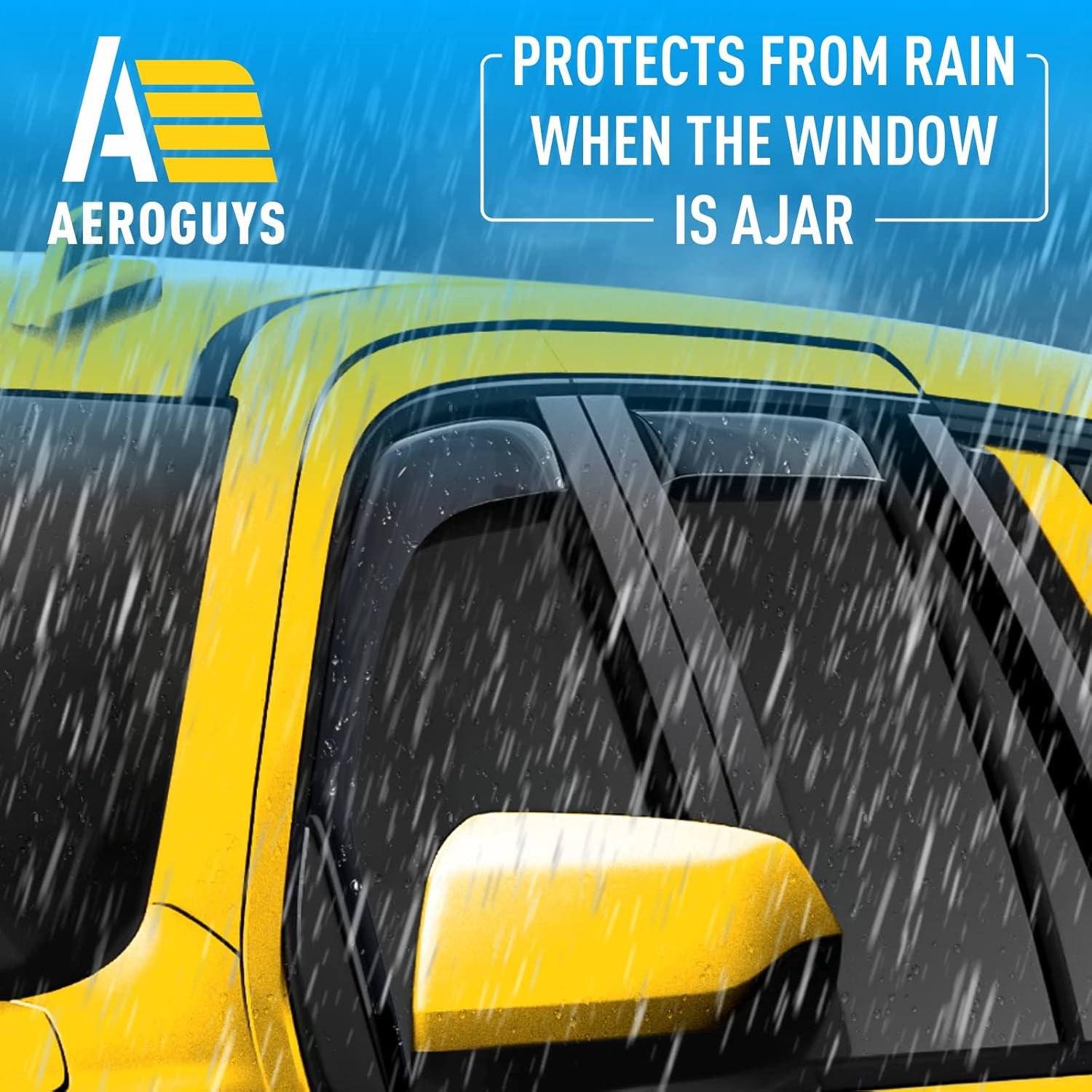 - No Tools Needed, Quick and Easy Assembly β These rain guards are very easy to fit. IN-CHANNEL INSTALLATION provides perfect fit for your car. Just slip it onto your carβs window and your job is done within minutes. There is no drilling or no tools required. Be sure that AEROGUYS window deflectors are water resistant, sun protective and will not bend, break or crack regardless of the weather conditions.
