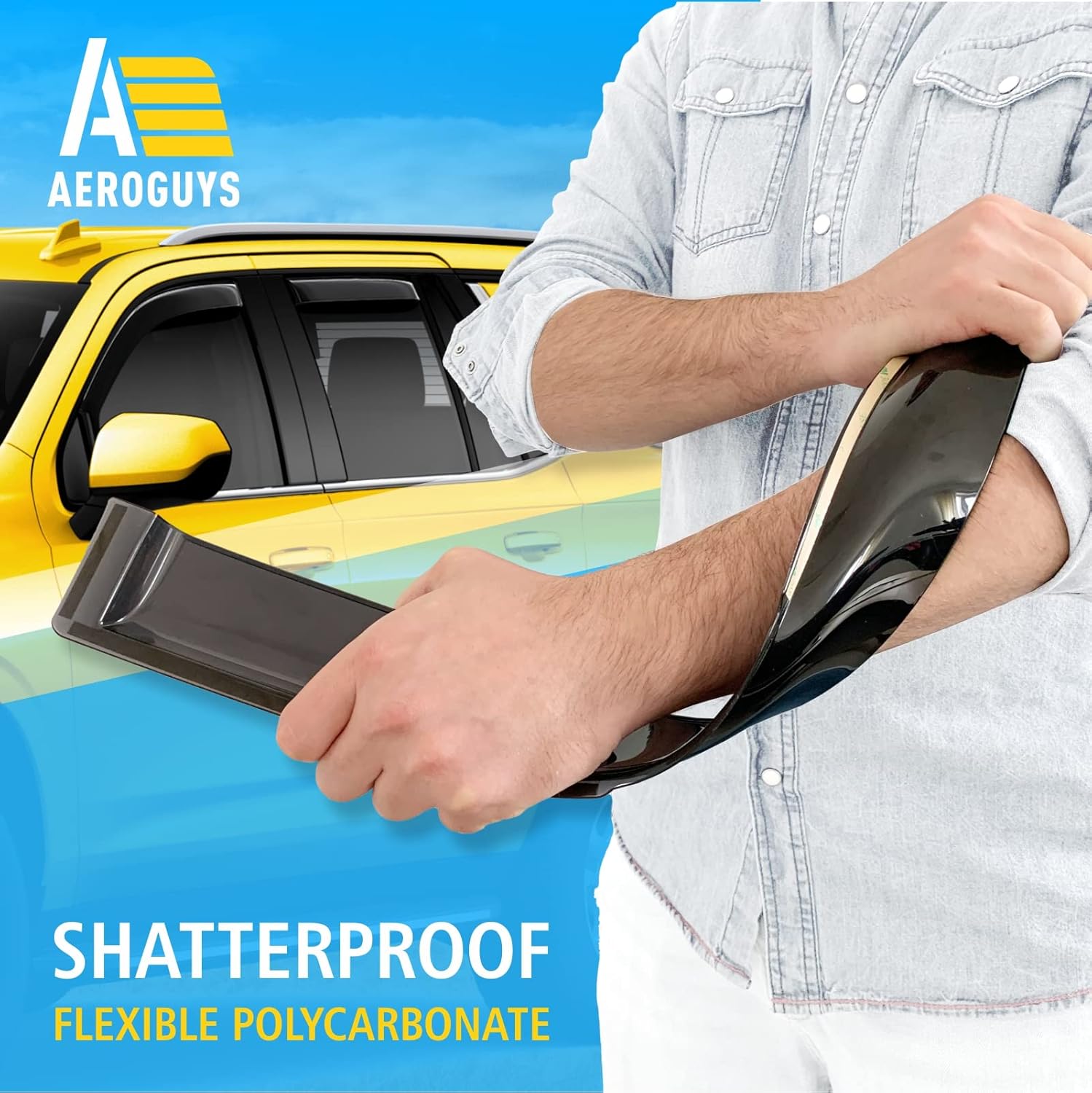 - Incredibly Durable AEROGUYS Auto Window Deflectors β They are made with strong and tough polycarbonate which is clear and scratch-resistant. They also provide UV protection making your ride more comfortable under all weather conditions.