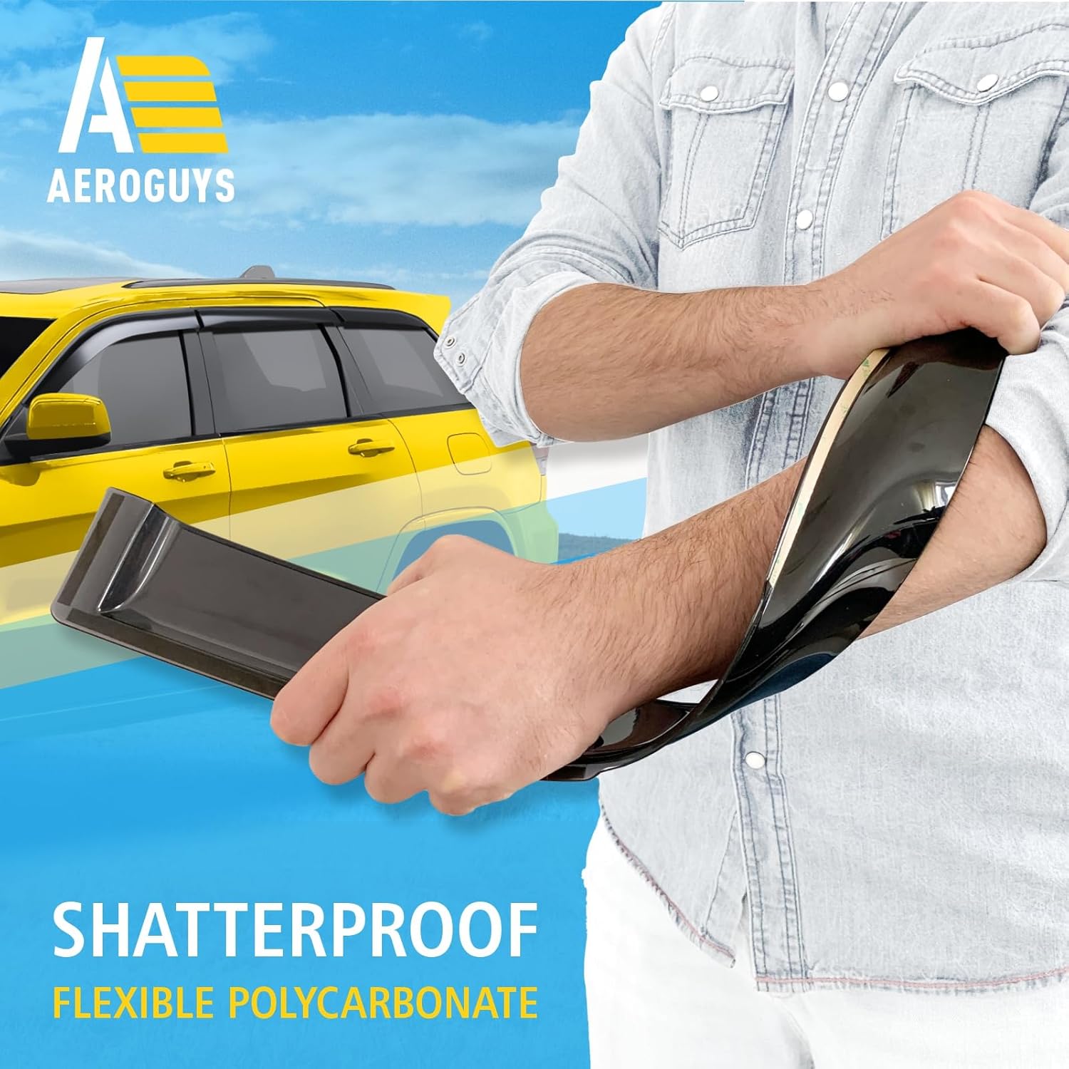- No Tools Needed, Quick and Easy Assembly β These rain guards are very easy to fit. TAPE-ON INSTALLATION provides perfect fit for your SUV. Just slip it onto your carβs window and your job is done within minutes. There is no drilling or no tools required. Be sure that AEROGUYS window deflectors are water resistant, sun protective and will not bend, break or crack regardless of the weather conditions.