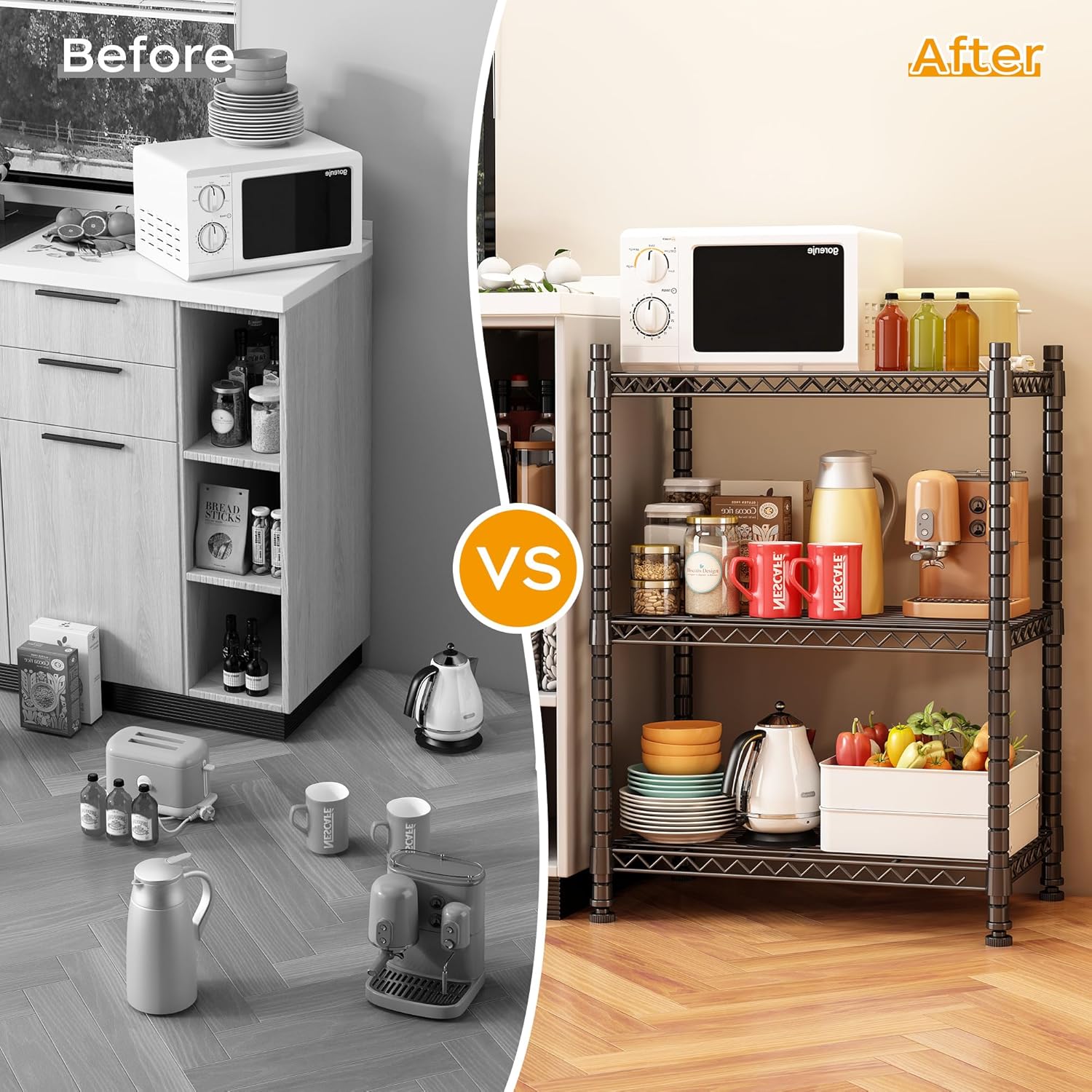 - CONVENIENT and PRACTICAL: The 3-tier Wire Shelving provides convenient storage space for easy access to tools and supplies. Without taking up too much space, it provides you with extra storage space, say goodbye to clutter and create a relaxing and comfortable home
