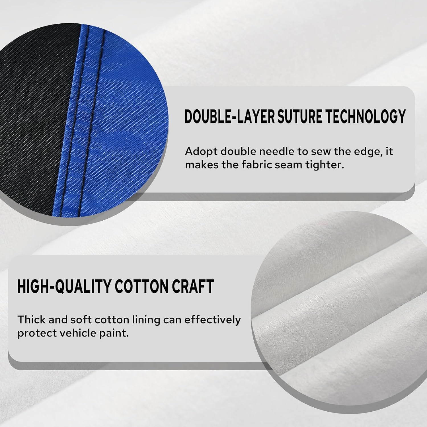 - ăUpgraded Materială1. The ATHUPEAD full exterior covers are made of 10 layers of high-quality composite material for greater durability. 2. A waterproof layer is added to the manufacturing process, which can effectively resist the intrusion of rain and snow. 3. The inner layer is soft cotton, which can protect the car paint from scratches. 4. The upgraded and thickened PEVA material has good sun protection and UV resistance, keeping the car cool in summer.