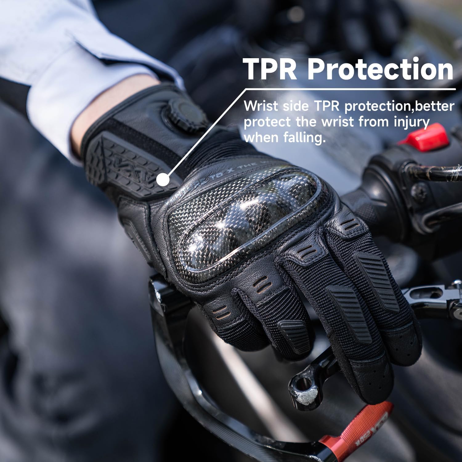 - Ultimate Safety and Comfort - VXW high protection motorcycle golves for man is made of soft and breathable suede and leather with air hole, full-body ergonomic design, super easy to take on and off. The gloves joints are equipped with ultra-hard carbon fiber protection and TPR protection to protect your knuckle, the palm of the gloves is designed with the silicone anti-slip increasing the friction when gripping.
