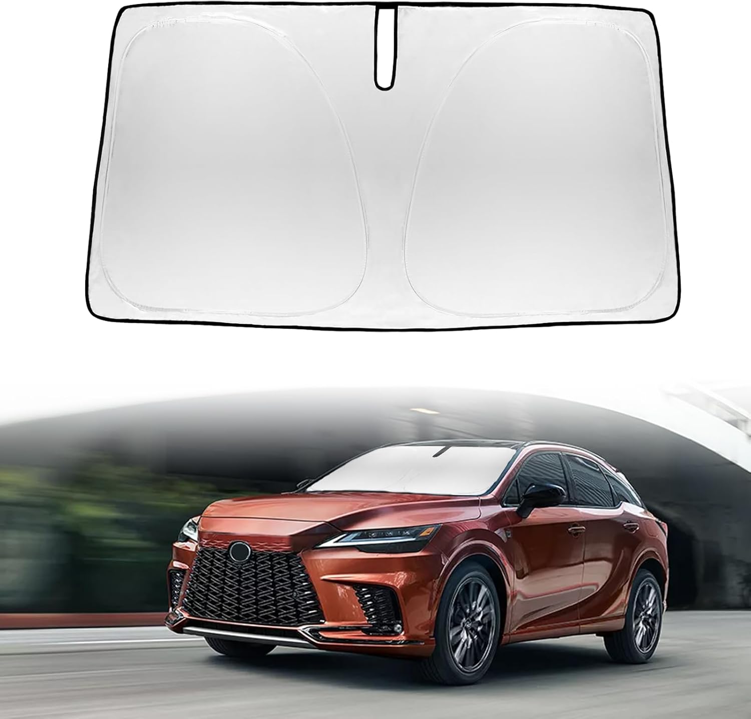 - âď¸ăVehicle SpecificăFront windshield sun shade fits perfectly for Lexus RX RX350 RX330 RX300 RX450 RX450h RX450hl 2023-2026 Series. Precise fit design and Reinforced steel rings make enough to make the shade fit precisely to the window, no need to use suction cups to hold it in place. Full covered your windshield,No Gap,100% Perfect fit. Its custom cut design and reinforced steel rings ensure a secure fit well.