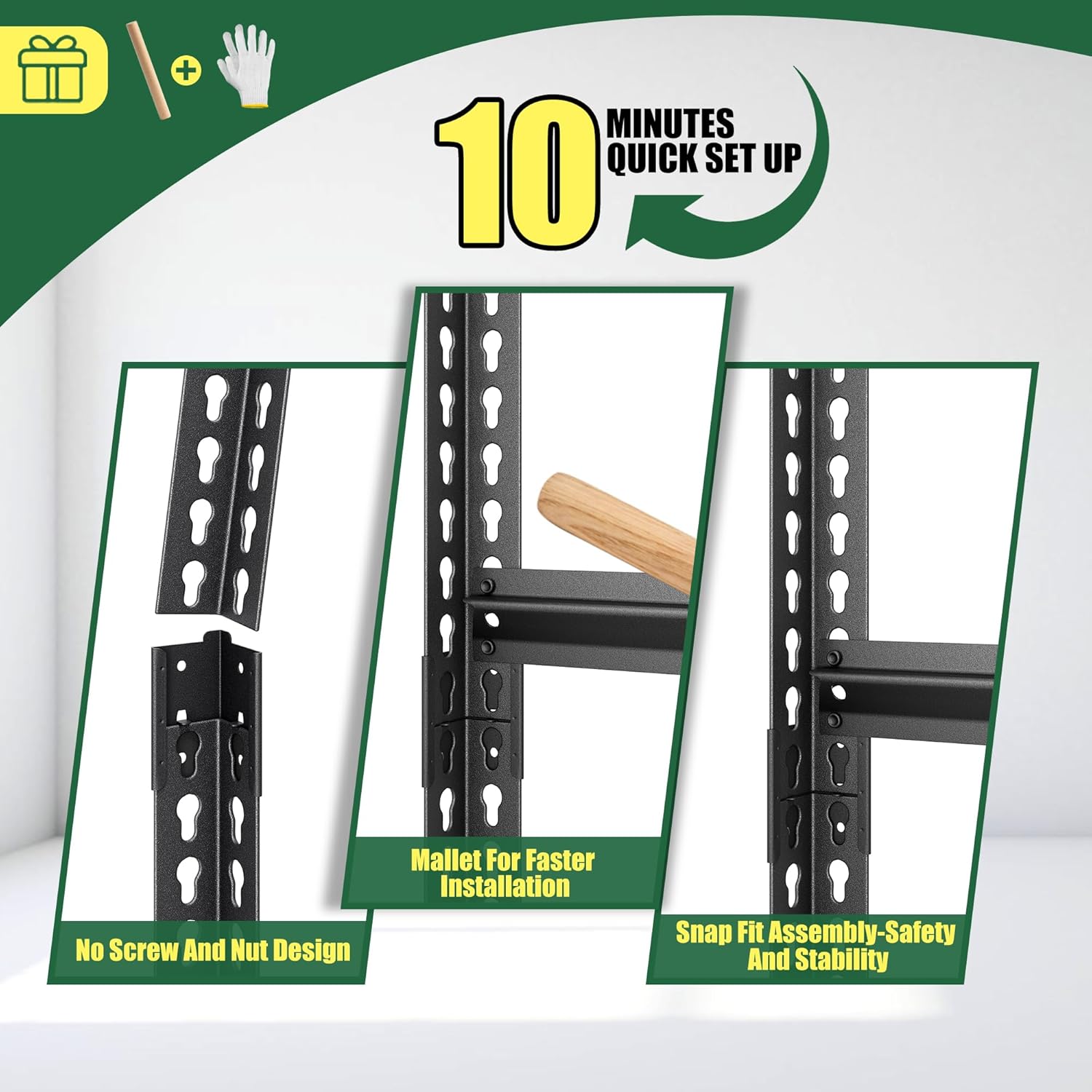 - ăSafeïŒRust-ProofăThe entire all-metal shelves are locked by pins to ensure crossbeams stay seated and 4 support straps to prevent twisting or spreading. The powder-coated finish on the steel uprights, support straps, and crossbeams, easy to clean, moisture-proof and rust-proof.