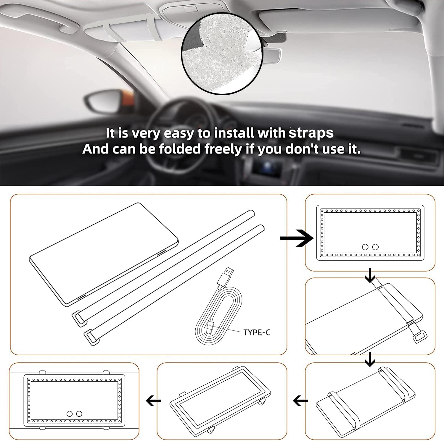 - UNIVERSAL SIZE DESIGN - The size of makeup mirror is 8(L)*5(W)*0.35(H) inches, which suits for most of the sun visor of cars. Compact and lightweight design, easy to install and use, does not take up extra space inside the cars.