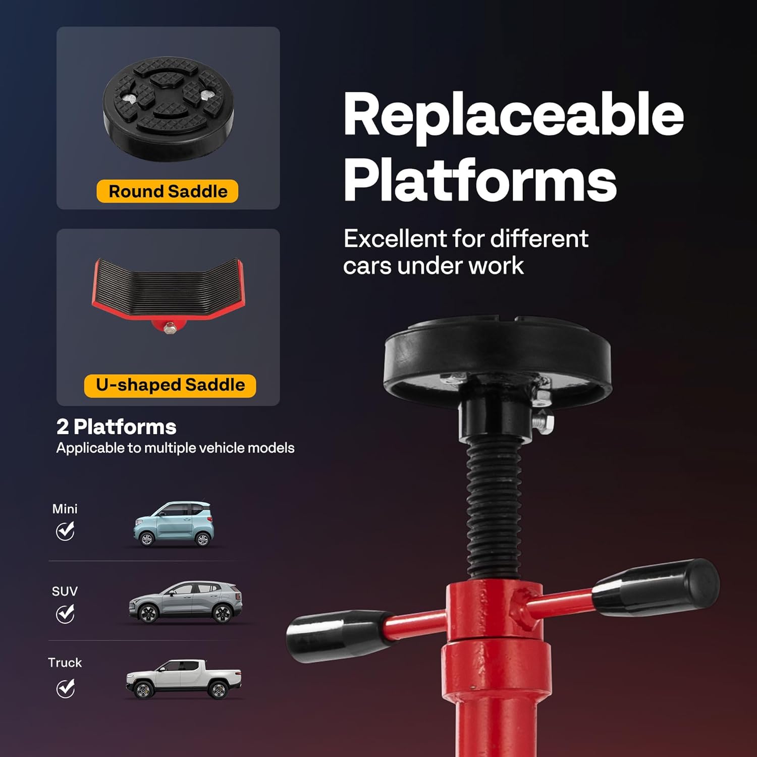 - WIDE APPLICATION - The under-hoist jack stand is the ultimate tool for both amateur and professional technicians; It is ideal for working on a variety of vehicle undercarriages and can accommodate different chassis needs across various vehicle models; Its sleek and compact design allows you to work in tight spaces and is convenient to pack away in your car for the journey guard