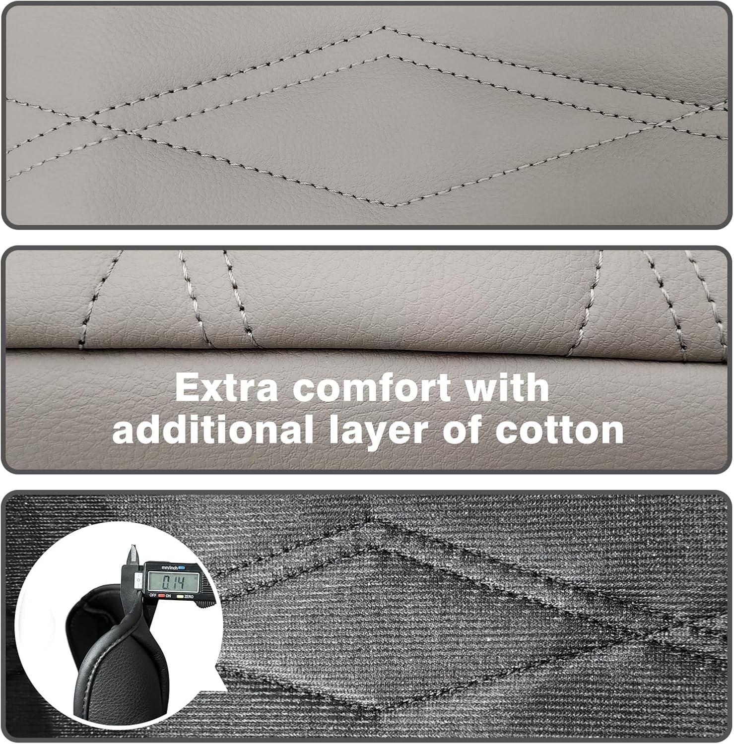 - Unique Design: Designed according to the OEM seat texture to make it match your interior perfectly and even better. Our armrest cover is crafted with high-quality Vegan Leather and an extra layer of foam, which is skin-friendly, breathable and soft.