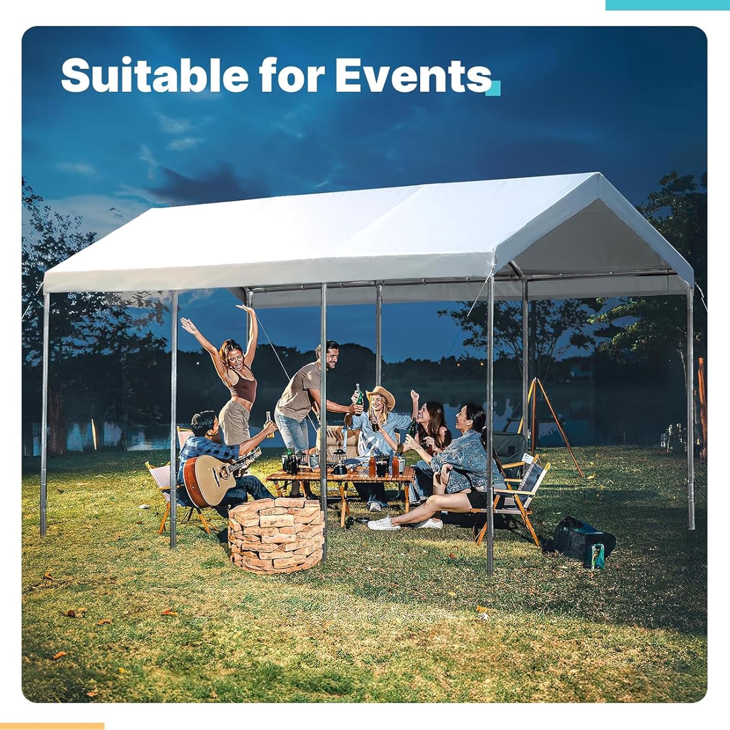 - Easy To Install, Bungee cords are inlcuded to tightly secure the canopy to the frame. This will enhance the stability of the carport