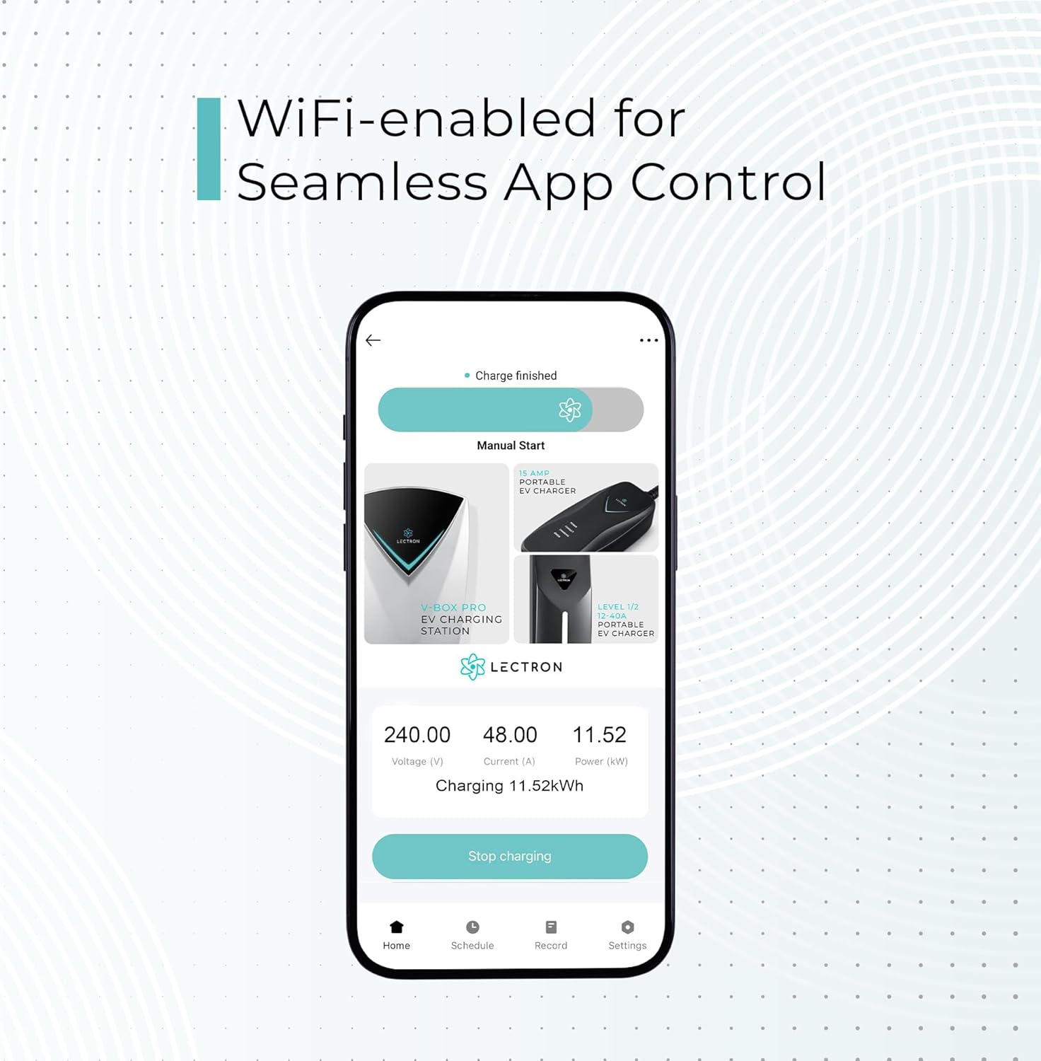 - APP ACCESS - Take control of your charging experience anytime, anywhere with the intuitive Lectron App. Keep tabs on your charging status in real-time, schedule your charging sessions, and even control how many kWh you want to charge your EV.