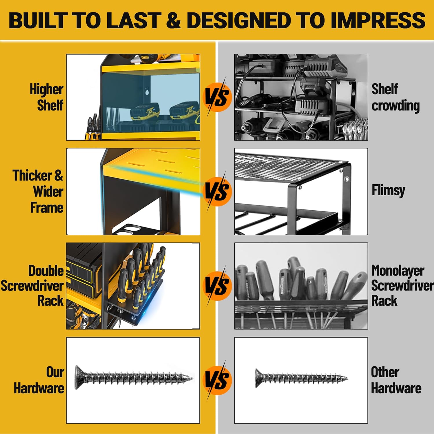 - 【PROFESSIONAL TOOL STORAGE SOLUTION】: YYR cordless tool organizer with charging station take advantage of wasted wall space and keep all of your power & hand tools in one central location so you can easily find them and never waste time searching for them again!
