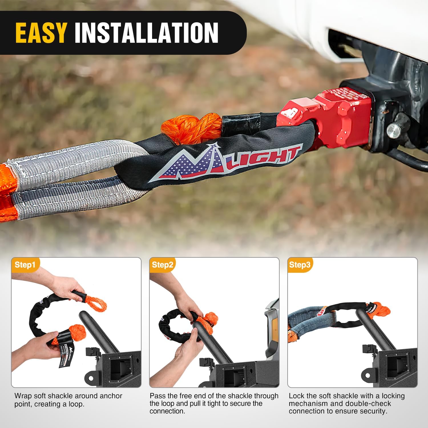- 【Versatile Applications】- More affordable and much safer, rugged and top quality, appropriate for all vehicle types including full size pickup, off road, SUV, ATV, UTV truck boat car etc, use with hitch receiver, snatch block, winch, or tow straps.