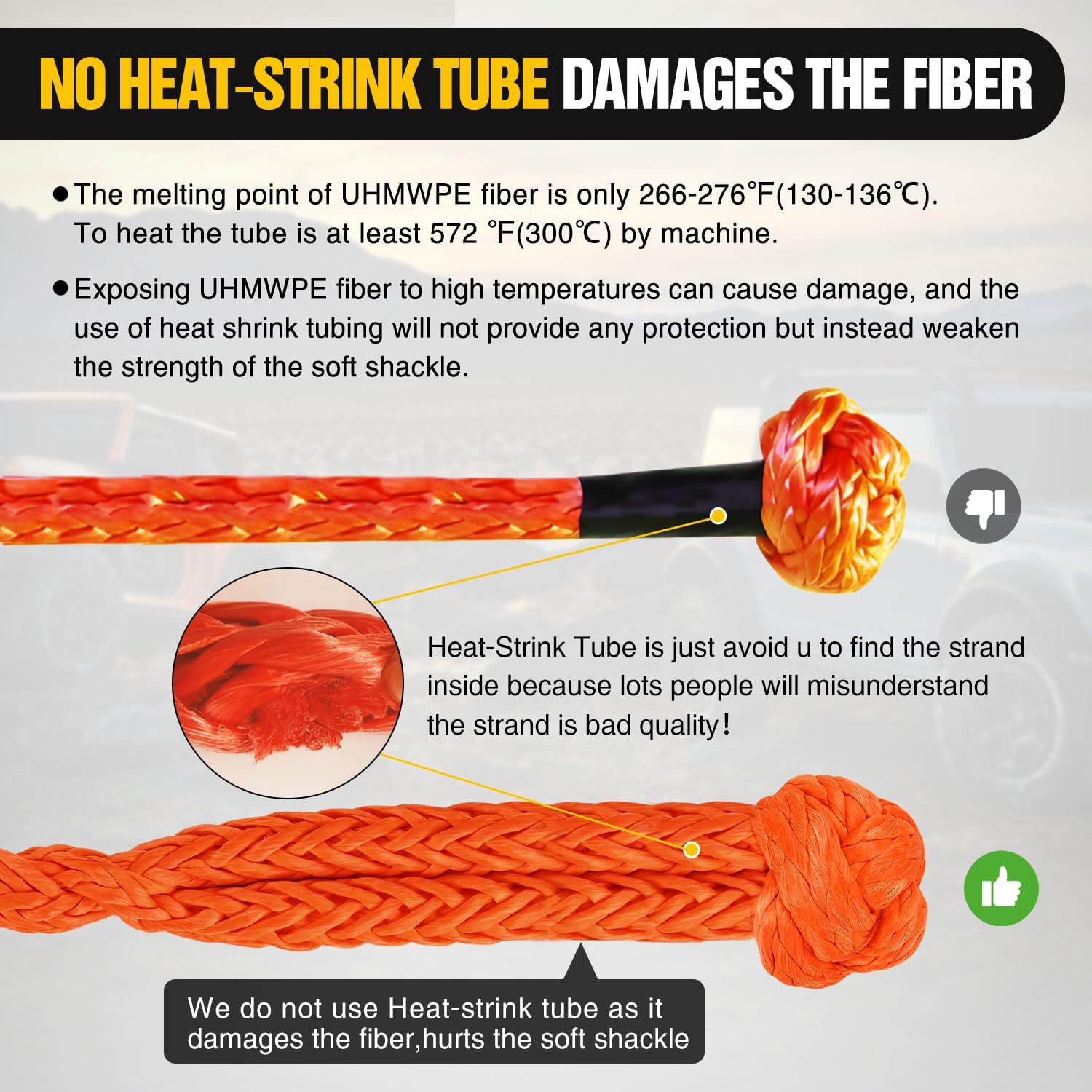 - 【Strong Load-bearing Capacity】- After testing, the breaking strength of our Synthetic Soft Shackle is 56,000LBS, and the normal working load capacity is 11,200LBS, of force and allow you to tow your vehicle out of any conditions safely and sound. Use these 4x4 recovery ropes at the lake, beach, in desert storms, and while you’re camping