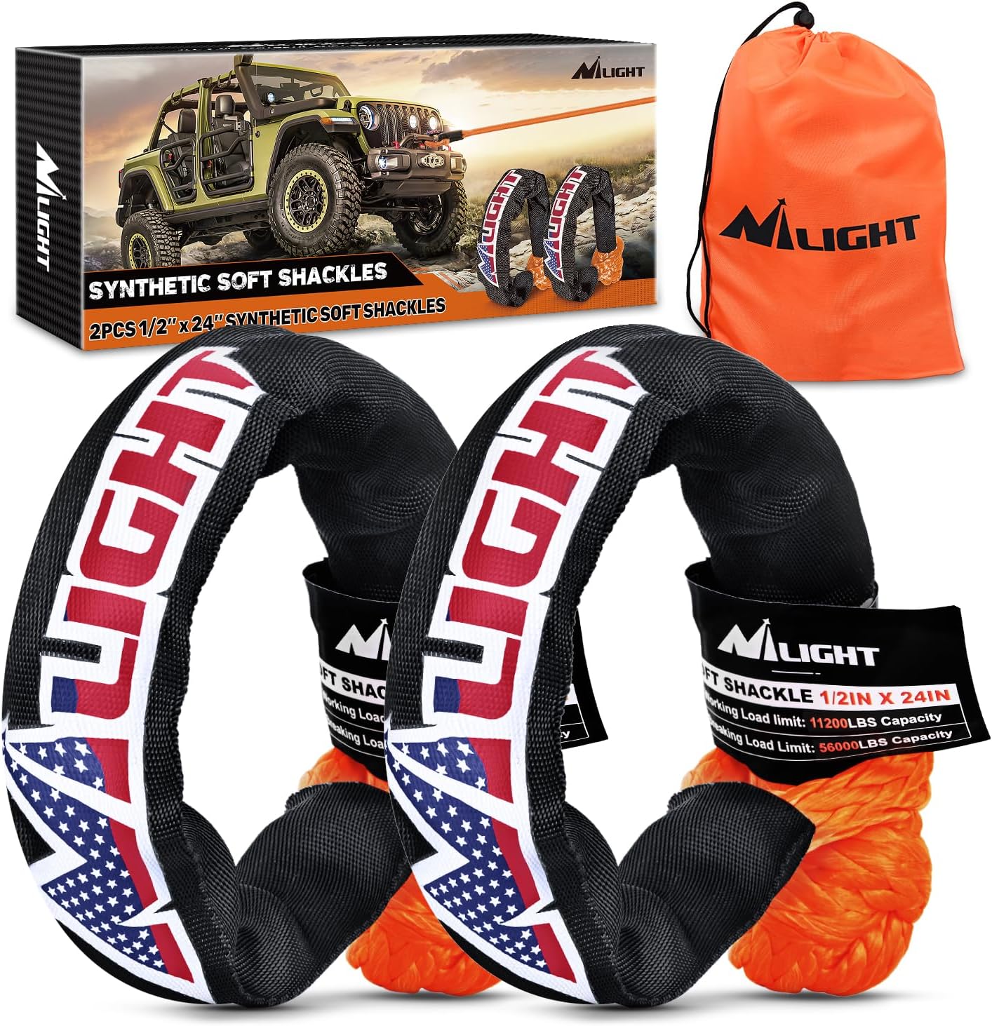 - 【Package Included】2PCS 1/2" x 24" Synthetic Soft Shackle, 1PCS Heavy Duty Drawstring Bag. The packaging is specially designed to avoid your package being damaged during transportation.2 Years Warranty Honored by Nilight.