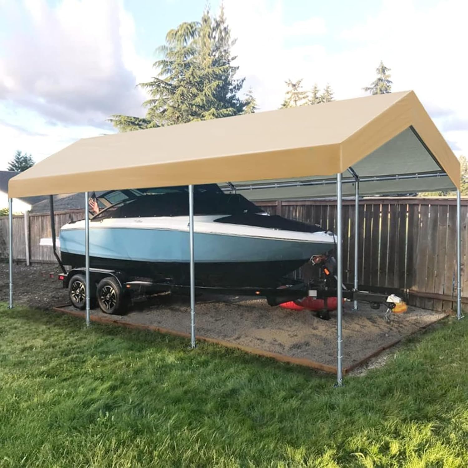 Carport Replacement Canopy Cover for 12' x 20' Car Tent Top Garage Shelter Cover Tarp with Ball Bungees (Only Top Cover, Frame Not Include) (Beige, 12' x 20')