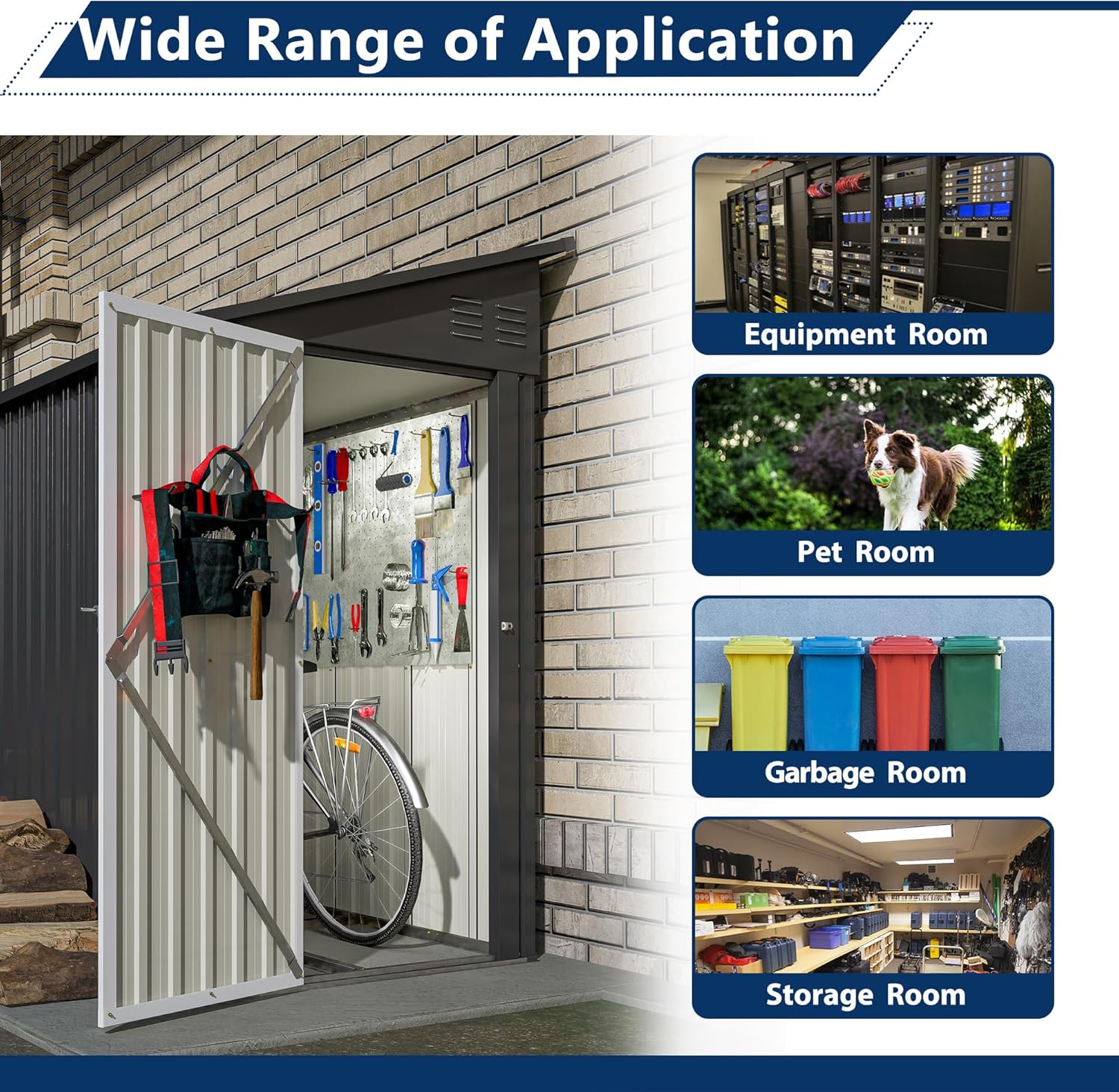 - [DURABLE CONSTRUCTION] - With Outdoor Storage Sheds, durability is a priority. These sheds are built to withstand various weather conditions, ensuring long-lasting usage. Made of weather-resistant galvanized coated metal that is rust, oxidation, and moisture resistant. Reliable protection is available for your valuable outdoor equipment.