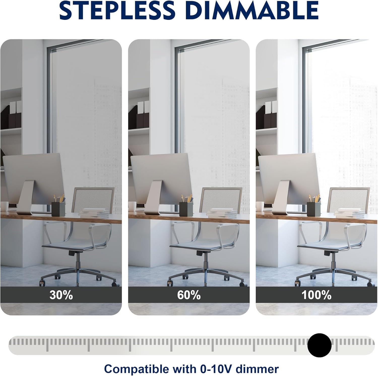 - 【Commercial Grade】Frosted down light lens and glare-free design produces soft and even lighting. Die-cast Aluminum housing for light weight and fast heat sink. All accessories included for suspension mount. It is easy to adjust hanging height from 5in~6.5ft. 5-year warranty included.