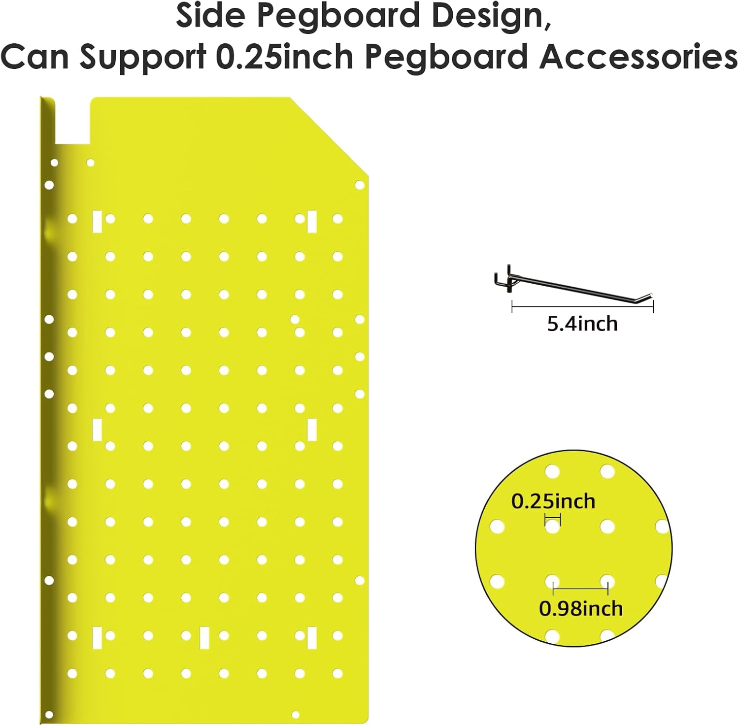 - Add 2 tools rack on the side to store multiple types of gadgets - Commonly used drill bits, tweezers, screwdrivers. Side panels are 0.25" pegboard design, come with four 5.4" long hooks and 4 hooks to hang tools, Strong enough and can hang heavy machines. to increase the diversity of storage.