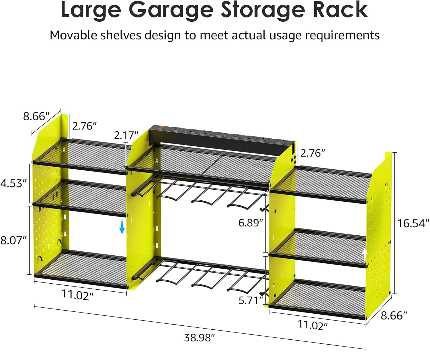 - Very convenient for charging your tool batteries, All-in-one design and the metal power strip with surge protection of 1200J, Able to protect your device to a certain extent. Utility rack size: L:38.98in * W:8.66in * H:16.54in. Can be mounted on wall.
