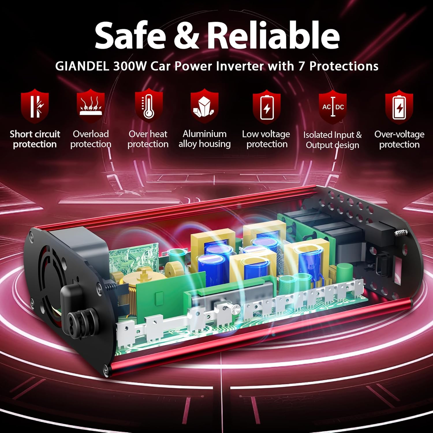 - GIANDEL 300Watt PURE SINE INVERTERS designed for your devices that require careful protection, provide 300Watt continuous DC to AC power in car and with 2 AC outlets and 2 USB charging ports, great for Christmas gift, charging string lights, laptop, speakers, cameras, nebulizer, game console,Pad and other