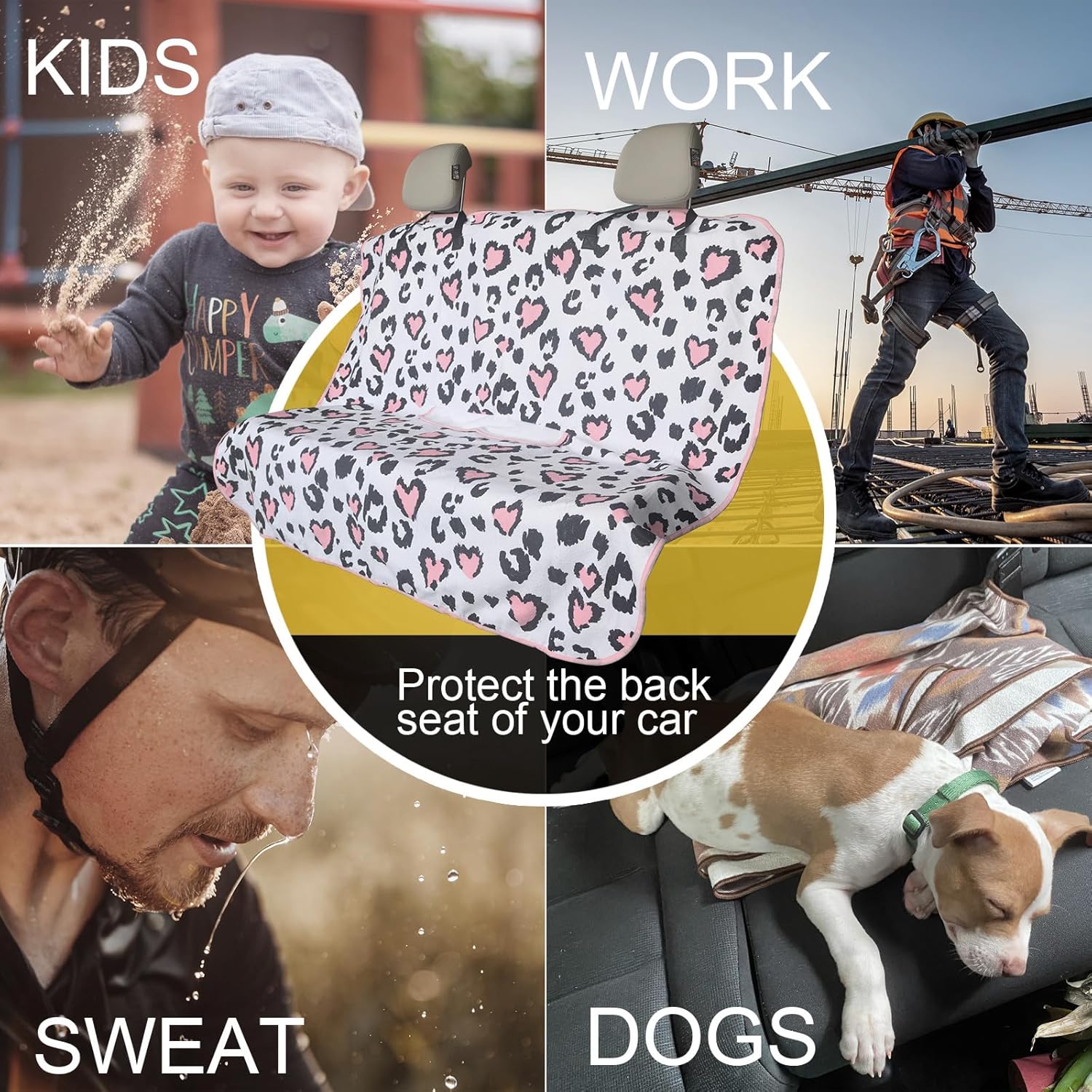 Back Seat Cover for Car Trucks Van SUV,Waterproof Rear Bench Towel Seat Covers for Dogs and Kids,Automotive Backseat Protector (Leopard Print)
