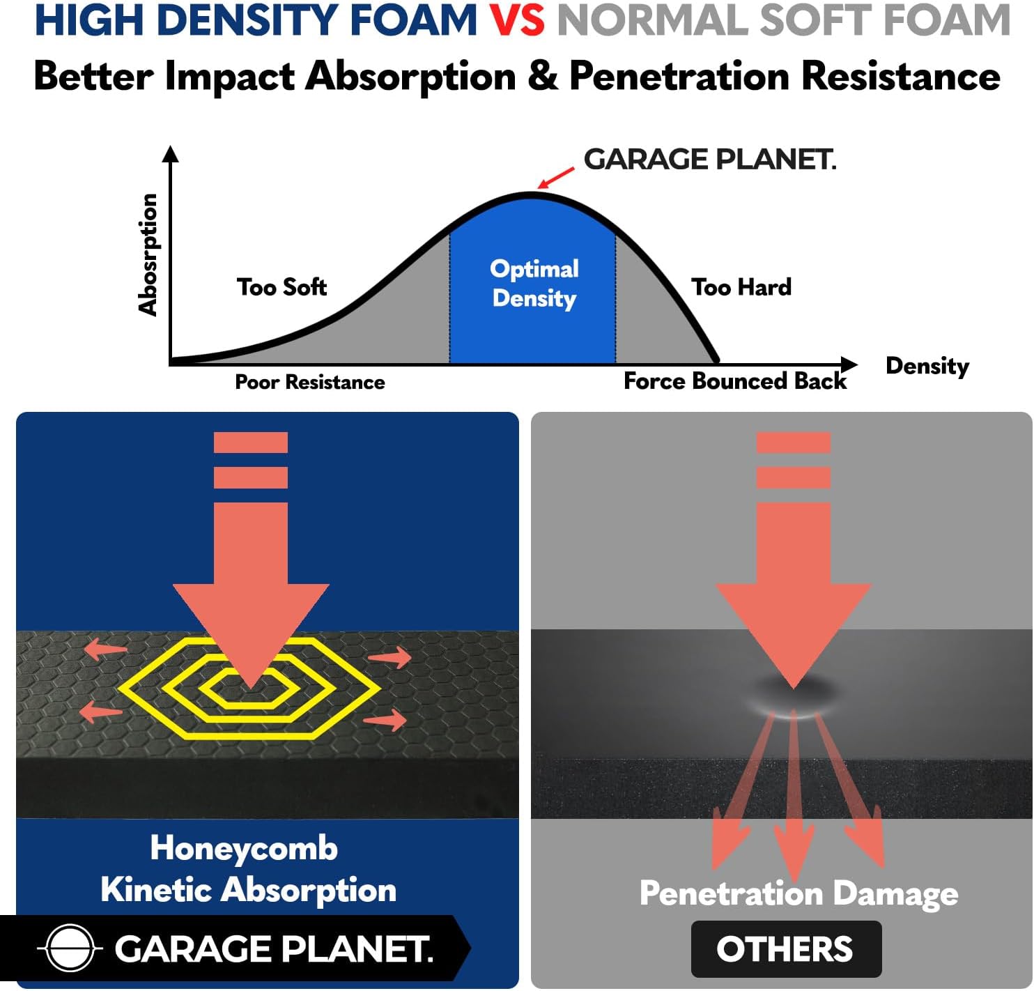 - ✅『Honeycomb Kinetic Absorption』Featuring the thickest padding on the market, our patented honeycomb kinetic absorption structure combines with top-quality material to absorb any impacts of over 485 lb (220 kg) on the garage wall guards.
