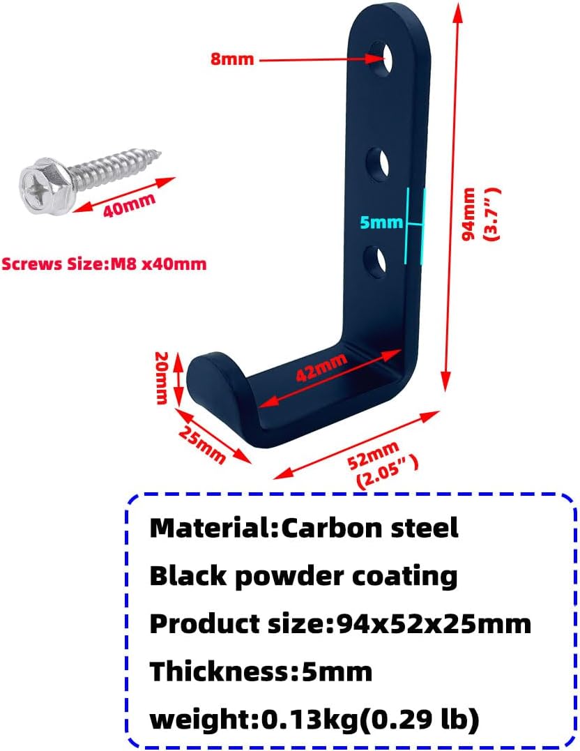 - Heavy duty wall mount J hooks, each hook can carry 176lb (80KG)