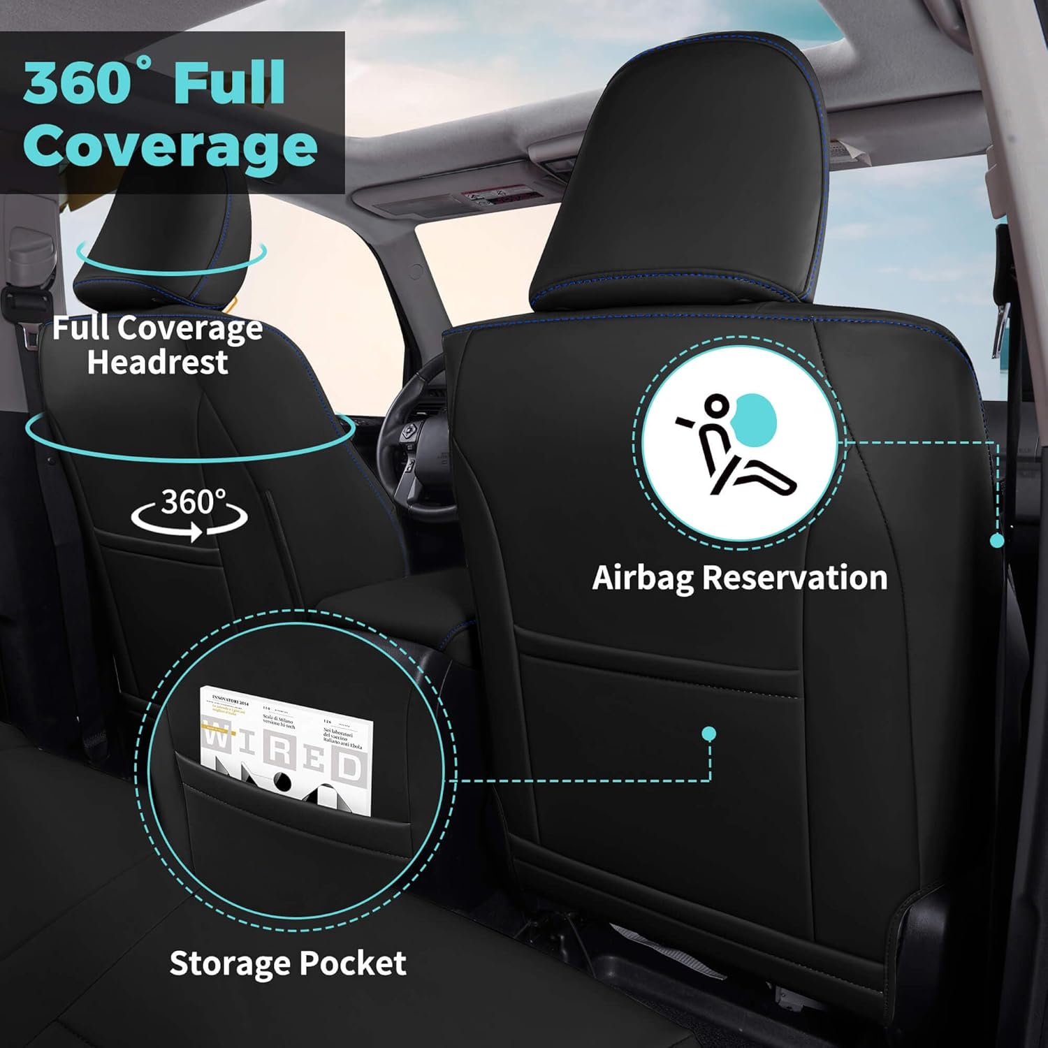 Seat Covers for Toyota 4Runner 2011-2024, Faux Leather Car Seat Cover Full Set, 3-Row-Only for 7 Seats Version-BlackBlue