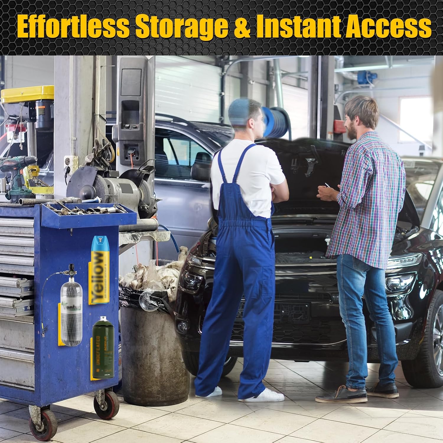 - Wide Use:It holds WD-40 cans, spray bottles, oil containers and air tanks for superior organization and convenience, perfect for utility rooms, garages or tool box!