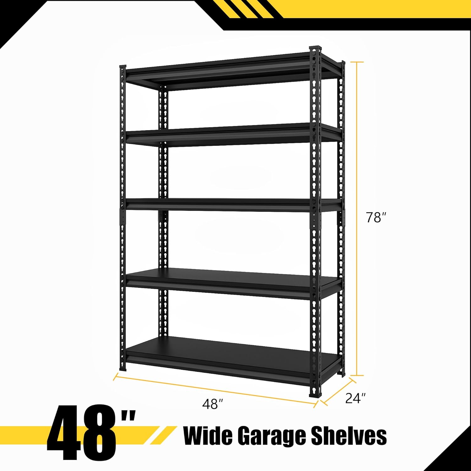 48" W Garage Shelving Heavy Duty,3000LBS Loads Metal Shelving Units and Storage,5-Tier Garage Storage Shelves Heavy Duty, Industrial Utility Shelves,48”W x 24”D x 78”H(Black)