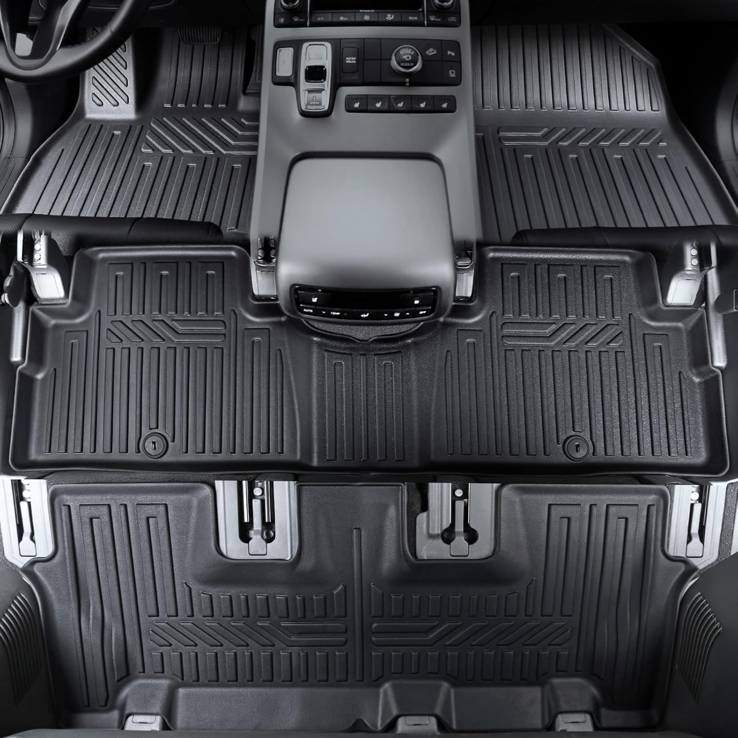 - Customized Design: Package includes 4pcs floor mats, 1pcs cargo mat, 1pcs lower cargo mat, and 2pcs top tether protectors for Hyundai Palisade 2025 2024 2023 2022 2021 2020 SE/ SEL/ SEL Premium/ XRT/ Limited/ Calligraphy. If you have the 8-seat model, you need to cut along the pre-set cutting lines for the 3rd row floor mat