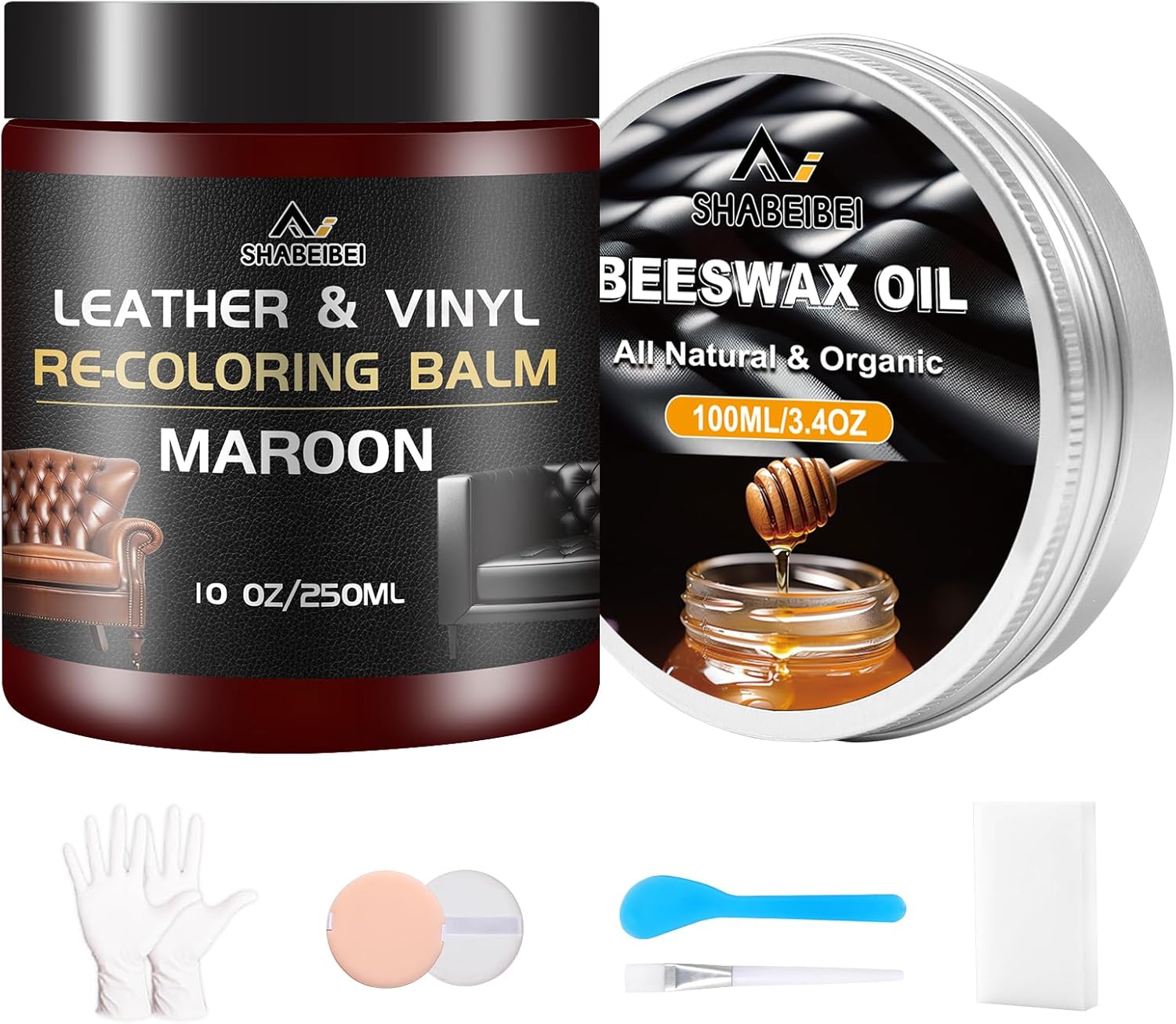 - Leather Conditioner with Beeswax Oil -This leather recoloring balm and leather repair kit for furniture contains all the things you need to bring back leather surfaces back to their former glory. Each polish leather color restorer comes with beeswax oil for leather to lubricate tough fibers and make them last longer.