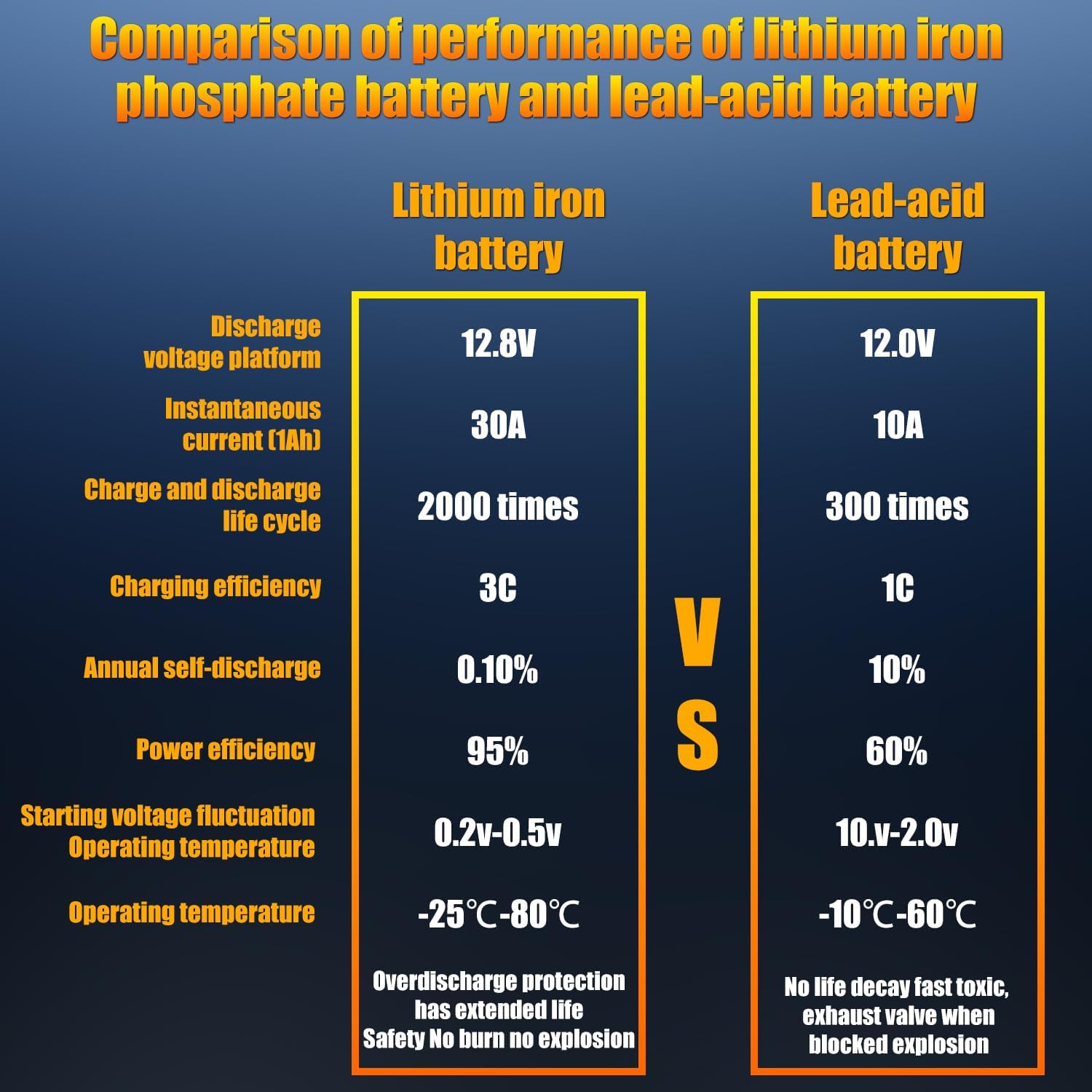- 【Safe and Stable】We use safe, stable, high-rate lithium iron phosphate battery material, combined with BMS control circuit for better safety and performance than ordinary lead-acid batteries. It also supports complex automotive electronic systems with high power requirements.With a complete intelligent protection circuit, our lithium-ion battery prevents overcharging, over-discharging, overvoltage, and overcurrent. Enjoy a worry-free driving experience