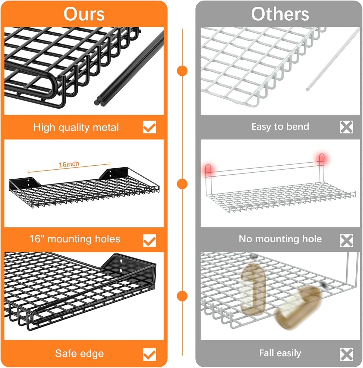 - Safe Edge: Wall mounted shelving has safe and no sharp edges, it is very important that nothing will slide off the shelf