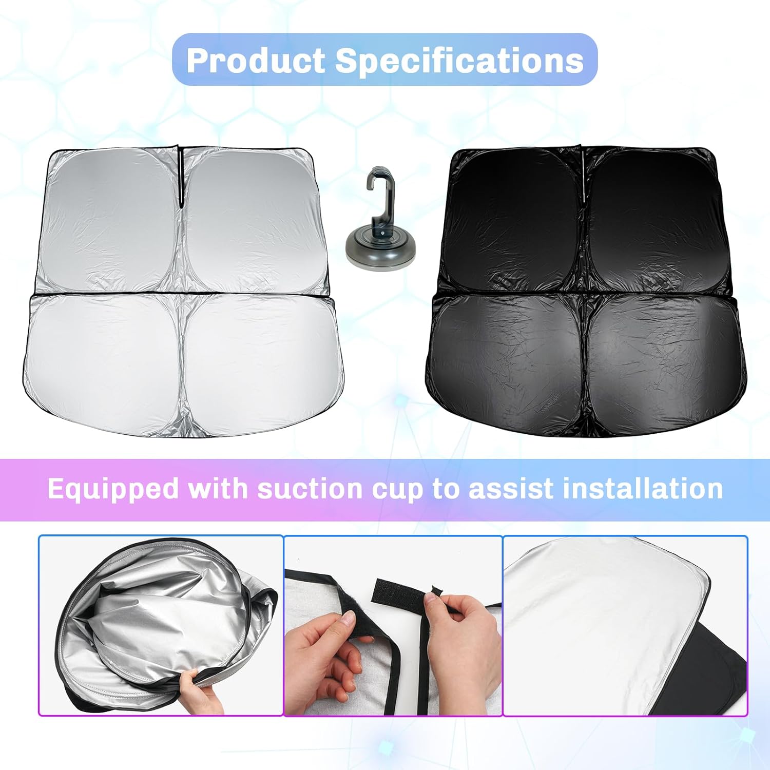 - 4.No matter what season you should need it: In summer, ultraviolet rays and heat light are very strong, sunshade for car windows keep your beloved car cool and in winter, when the sky is always clear, ultraviolet rays (a very powerful Harmful light) also exist. You need this Sun Visor for sun protection and UV protection at all times.