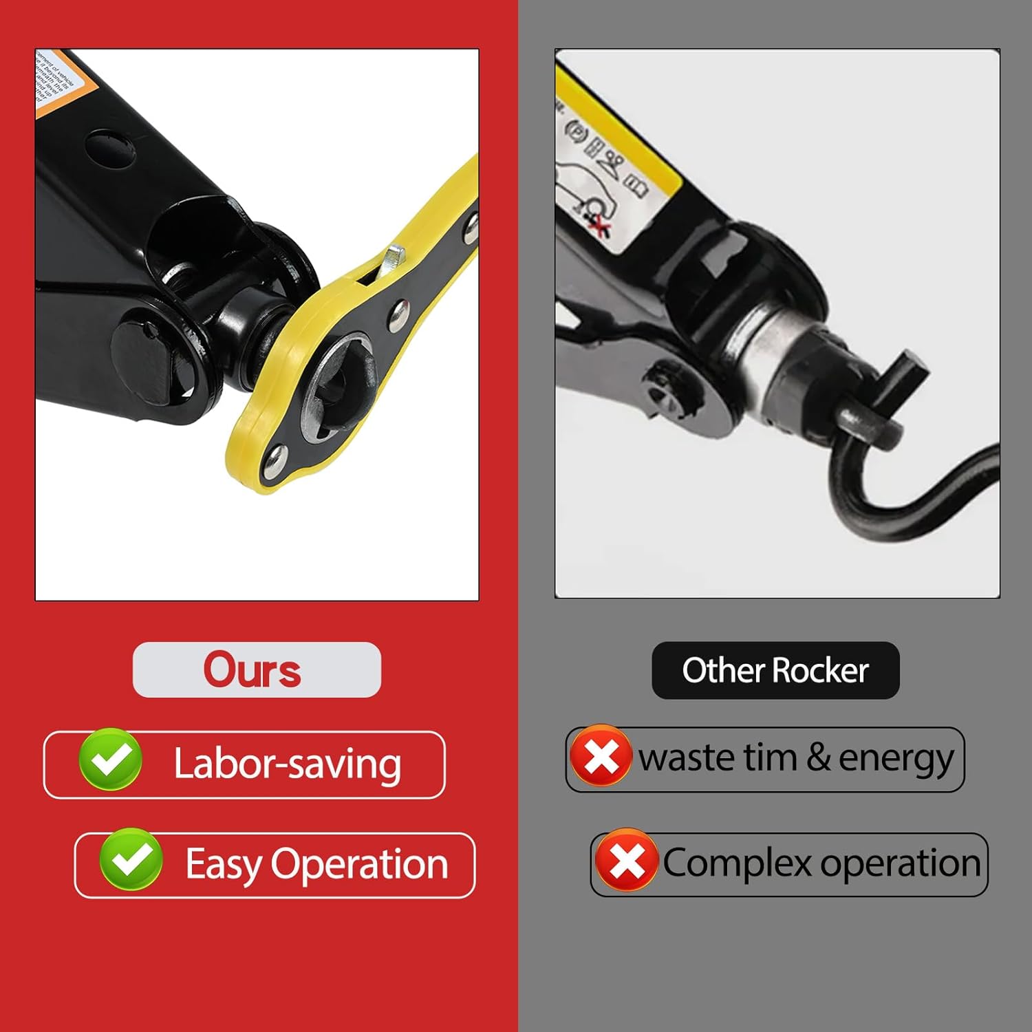 - 3.ćEasy to UsećThe scissor jacks have a simple and easy-to-operate design, while the lug wrench and tire changing kit are designed to provide a comfortable grip and maximum leverage. For any emergency, this Car Jack Kit will help you change your tire fast and easy,quick jack car lift