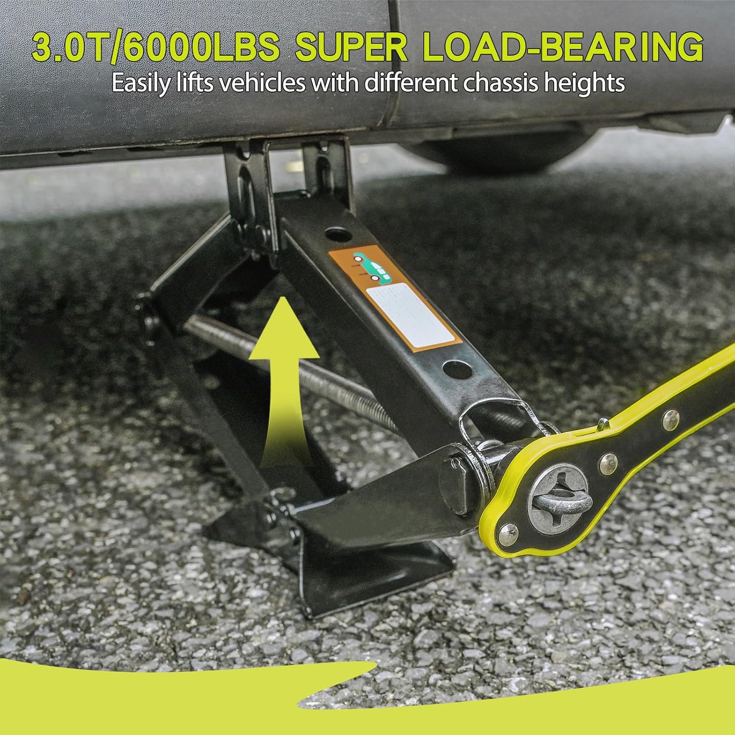 - 6.ćUniversal Car Emergency KitćOur portable scissor jack 3 tons is universally tire jack for truck, cars, SUVs,MPVs, UTV, Sedan, Coupe, Hatchback, and other vehicles. Car jack kit is perfect for emergency situations where you need to change a flat tire, remove a stuck wheel, or perform other vehicle repairs.Car jack necessities
