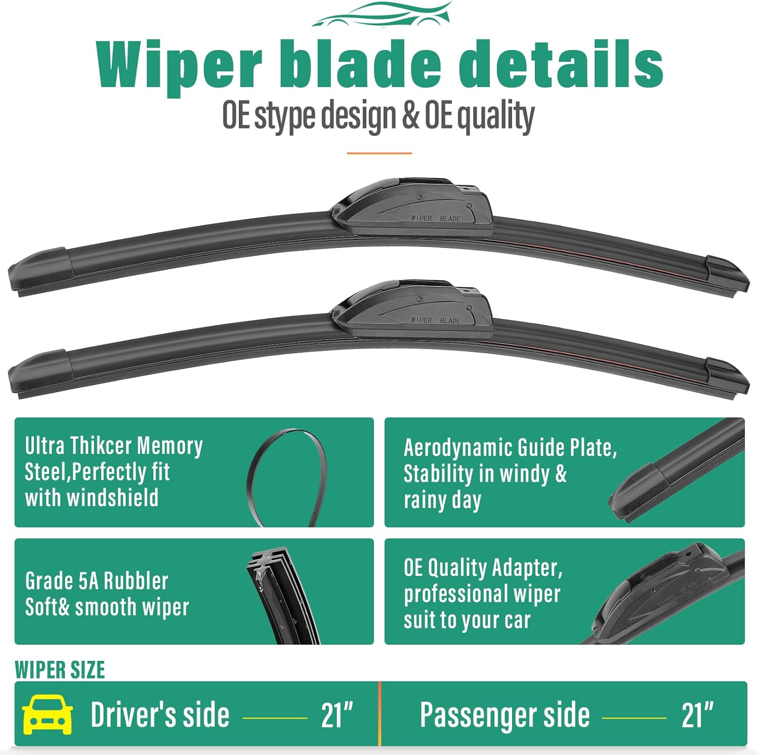 - [More Quiet wipers]: Precision engineering for optimal contact and even pressure distribution ,aerodynamic design reduces wind lift and noise.