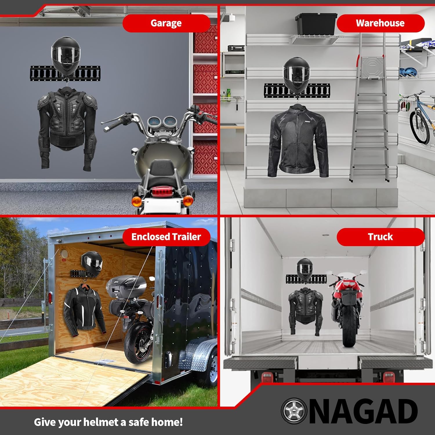 - Messy trailers (SIGH): We've all had those days when, after we've simply tossed helmets into the back of our enclosed trailer or truck and when you need them again, you find them dirty from falling to the floor. Not only does it make your enclosed motorcycle trailer crowded and cluttered, but unstored securely helmets may get destroyed!